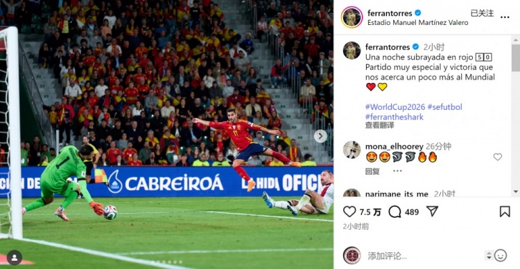 此役是费兰-托雷斯为西班牙队出战的第50场赛事 ,他在社交媒体上晒出赛事 照片,配文:“值得铭记的夜晚,足球直播高清在线直播为西班牙出战50场,这是一场非常特别的赛事 ,获胜 让我们距离世界杯赛 更近一步。”
