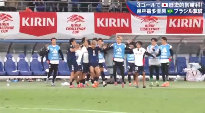 10月14日讯 麒麟杯国际友情 赛,日本主场作战 让二追三反转 五星巴西,足球现场直播视频在线观看赛后日本后备 席几乎全员冲入场内热血 庆祝。这是他们历史首次击败巴西这一强敌。