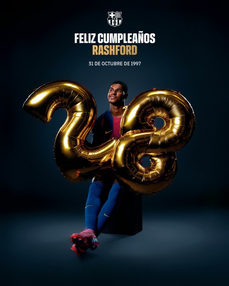 10月31日讯 巴萨官方晒海报,祝贺队内前场球员拉什福德28岁生日快乐。