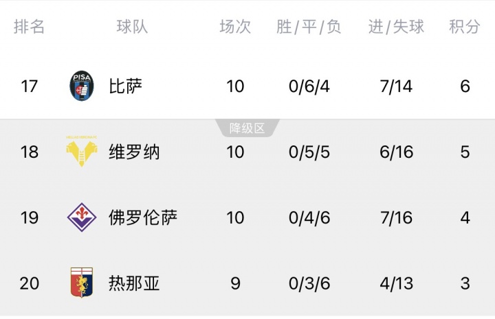 意甲末尾4队比萨、维罗纳、佛罗伦萨、热那亚开赛至今0胜,雨燕体育直播免费高清皮奥利下课在即!