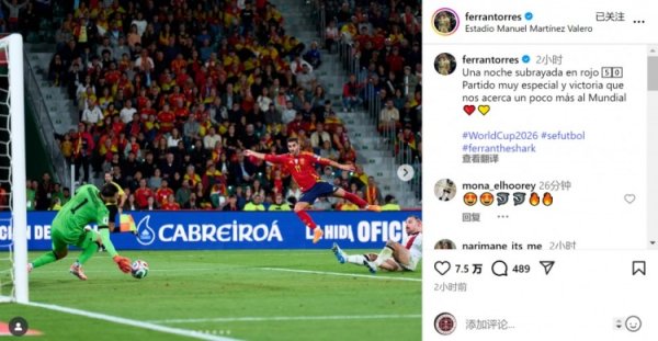 费兰社媒:为西班牙队出战50场,获胜 让我们离世界杯赛 更近一步10月12日讯 世预赛欧洲区赛事 ,费兰-托雷斯杆位出战,帮助西班牙主场作战 2-0击败格鲁吉亚。 此役是费兰-托雷斯为西班牙队出战的第50场赛事 ,他在社交媒体上晒出赛事 照片,配文:“值得铭记的夜晚,为西班牙出战50场,这是一场非常特别的赛事 ,获胜 让我们距离世界杯赛 更近一步。” 费兰-托雷斯在为西班牙出战的50场赛事