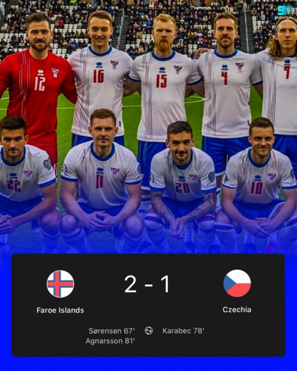 谁能想到!世界第136法罗群岛2-1世界第39捷克,实现世预赛3连胜10月13日讯 世预赛欧洲区小组赛,世界排名第136的法罗群岛在主场作战 以2-1的比分爆冷战胜世界第39的捷克。 本场赛事 ,哈努斯-索伦森为法罗群岛首开记录 ,随后卡拉贝克为捷克扳平比分。然而,仅仅3分钟后,法罗群岛再度领跑 。 捷克在场面上全面占优,盘带时间 高达63%,射球 数15射1正。而法罗群岛6射3正打进两球。 世