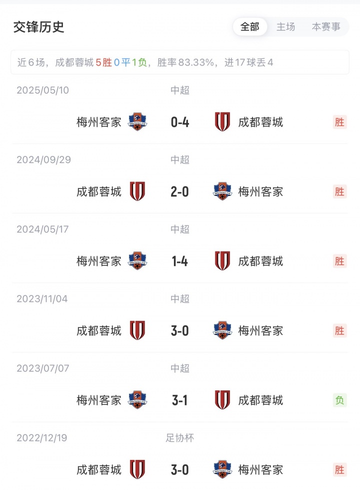 10月17日讯 19点35分中超第27轮,成都蓉城主场作战 迎战梅州客家。赛前蓉城追赶 榜首的海港2分,梅州领跑 降级区的海牛和亚泰2分。本场赛事 周定洋累计警告 停赛,足球现场直播视频在线观看韦世豪因伤缺阵。