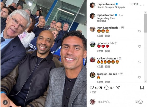 观战科莫vs尤文!瓦拉内社媒晒与温格、亨利合照:传奇10月21日讯 瓦拉内更新社媒动态,晒出与温格、亨利的合照。 意甲第7轮赛事 ,科莫主场作战 2-0击败尤文。目前担任科莫俱乐部董事的瓦拉内与温格、亨利一起观看赛事 ,瓦拉内社媒晒出合照,配文:“传奇!”
