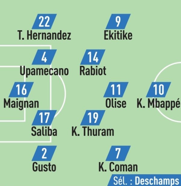 队报预测法国队杆位:姆巴佩突前,埃基蒂克、奥利塞、萨利巴出战10月10日讯 北京时间10月11日2点45,世预赛欧洲区小组赛D组第三轮,法国队对阵阿塞拜疆队,《队报》赛前预测法国队杆位。 队报预测法国队杆位:迈尼昂;特奥、于帕梅卡诺、萨利巴、古斯托;拉比奥特、K-图拉姆、埃基蒂克、奥利塞、科曼;姆巴佩