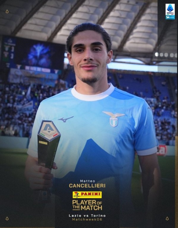 连进两球,意甲官方:坎塞利耶里当选拉齐奥3-3都灵全场最佳10月4日讯 在本轮意甲,拉齐奥3-3战平都灵。 本场赛事 拉齐奥球员坎塞利耶里连进两球,赛后他也当选意甲官方评选出的本场最佳球员。
