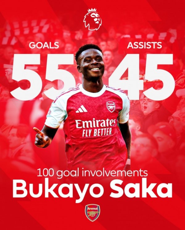 一场两项里程碑!萨卡是第8位直接加入 100粒英超得分 的阿森纳球员10月4日讯 在本轮英超阿森纳对阵西汉姆的赛事 中,萨卡打进一球。 据统计,萨卡在第200次英超出场中打进了55球,助功 45次,直接加入 100球,也成为阿森纳队史第8位直接加入 100粒英超得分 的球员。 24岁29天的萨卡也成为做到这一点第二年轻的阿森纳球员,仅次于23岁237天的法布雷加斯。