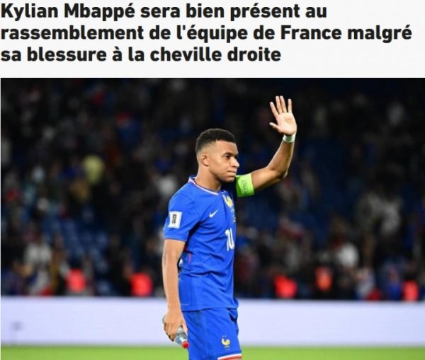 带伤出战?队报:姆巴佩本轮西甲关节扭伤 脚踝,但仍坚守 去法国队报到10月05日讯 据法媒《队报》消息,尽管在本轮西甲皇马3-1黄潜的赛事 中脚踝负伤 ,但姆巴佩预计仍会前往本期法国国家队报到。 报道称,预计姆巴佩将于当地时间周一和他的法国队友一起前往克莱枫丹,准备参加10月的国际赛事 。法国国家队将在周一开始练习 ,之后将先后出战对阵阿塞拜疆和冰岛的两场世预赛。 姆巴佩在对阵黄潜的赛事 中破门
