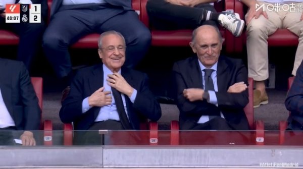 笑嘻了!皇马打入第二球反超比分后,弗洛伦蒂诺观赛人群 席上开怀大笑 2025-10-13 -