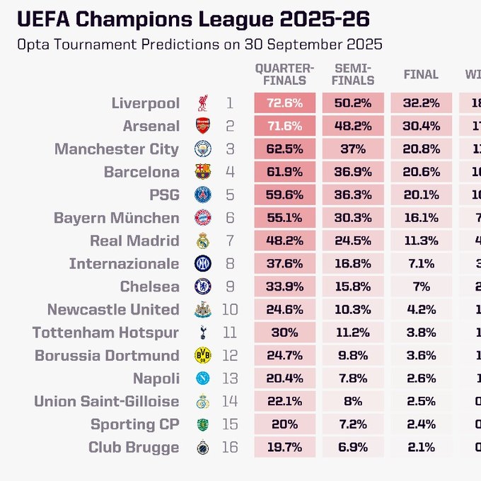 opta欧冠夺魁 概率↓