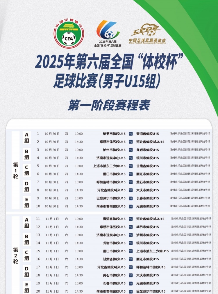 2025年第六届全国“体校杯”古代足球 赛事 (男子U15组)第一阶段分组+赛程表 🎙️