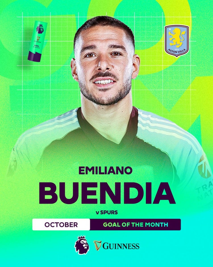 11月7日讯 英超官方宣布,维拉中场球员布恩迪亚对阵热刺的远射破门,当选英超10月最佳得分 。