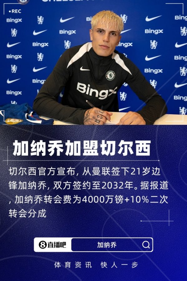 官方:切尔西签下21岁曼联翼锋加纳乔,签7年+转会费4000万镑08月31日讯 官方消息,切尔西签下21岁曼联翼锋加纳乔,双方签约至2032年。 据此前报道,加纳乔的转会费为4000万镑+10%二次转会分成。 【球员集锦】 加纳乔现年21岁,阿根廷翼锋,现德转估值为4500万欧。上赛季,加纳乔为曼联出场58场,取得11粒得分 和10次助功 。