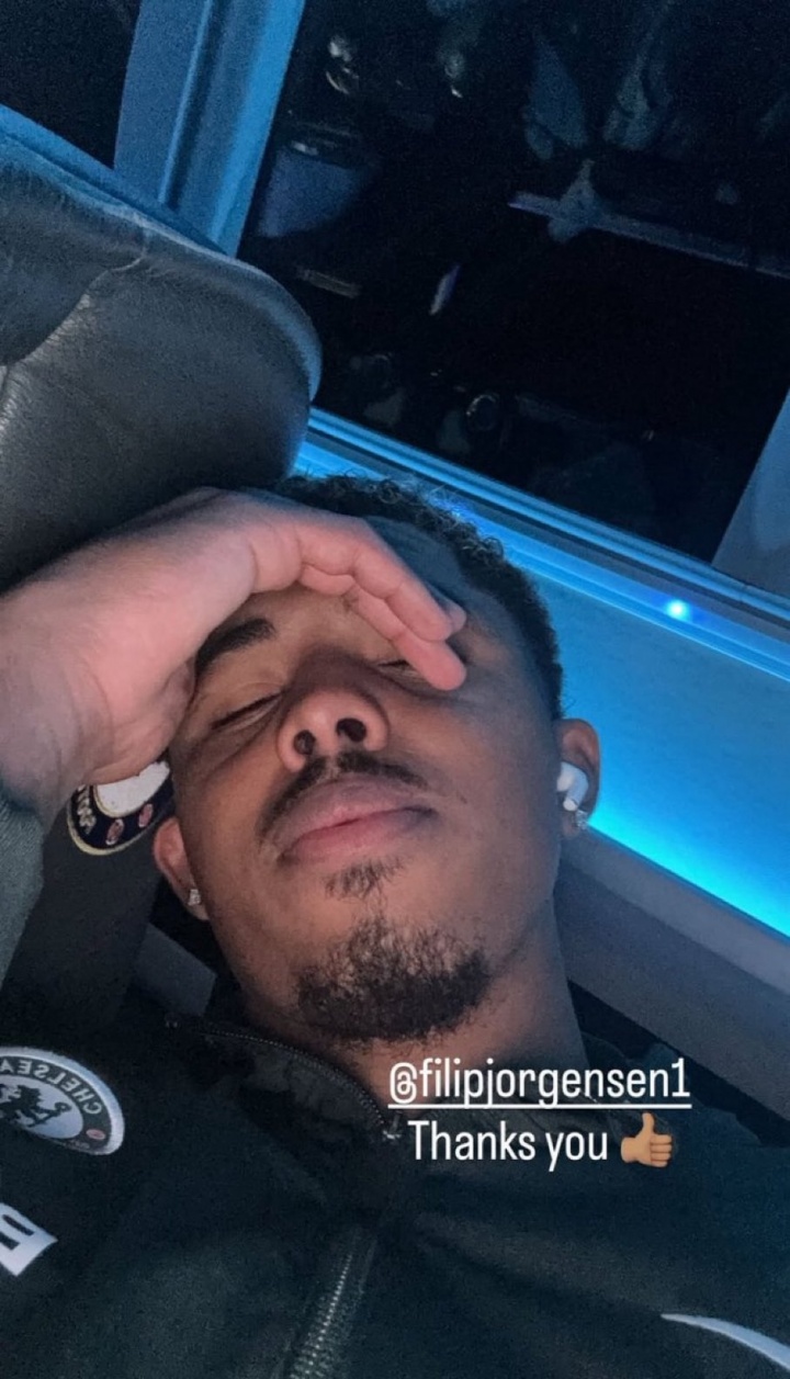 赛后,福法纳在社媒上晒出自己一脸无奈的表情,并调侃误伤自己的队友约根森:@约根森,谢谢你👍