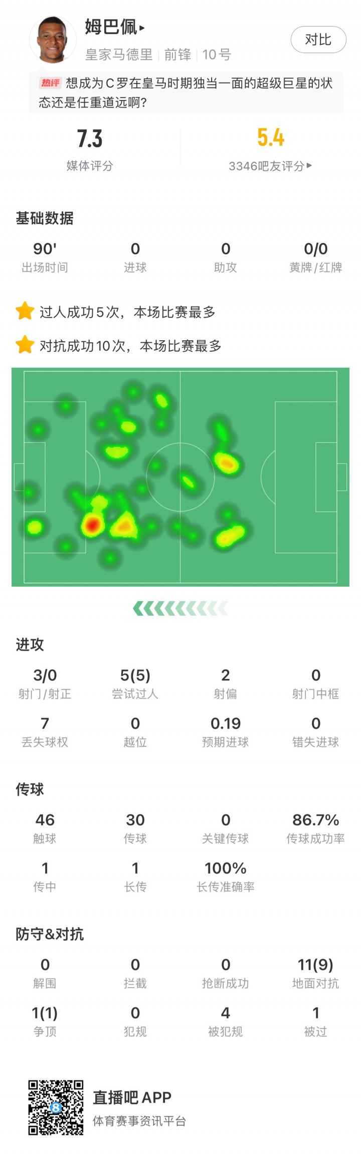 姆巴佩3射0正,欧洲杯直播视频0关键传送球 ,10次成功对峙 全场最高;维尼修斯本场0次射球 ,4次关键传送球 ,9次对峙 仅2次成功。两人均未能攻破安菲尔德的古代足球 门 。