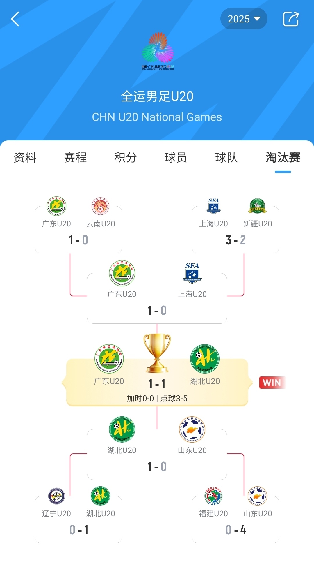 11月12日讯 全运会男足U20赛事 落下帷幕,最终湖北U20队首次夺得金牌,广东U20队银牌,雨燕直播体育免费直播上海U20队铜牌,山东U20队第4。