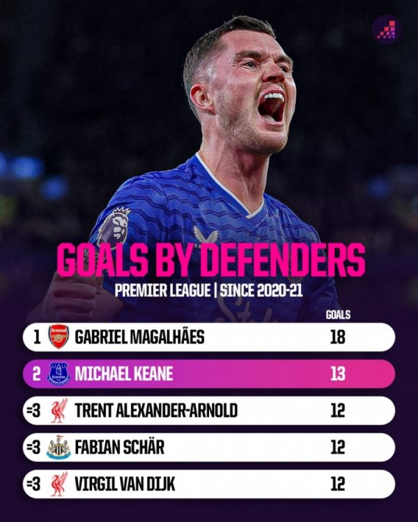 20-21赛季以来英超后场球员得分 :加布里埃尔18球最多,基恩13球次席11月11日讯 德国转会市场统计了2020-2021赛季以来后场球员球员在英超的得分 数量,并列出榜单,加布里埃尔18球居首,迈克尔·基恩13球次席。 20-21赛季以来英超后场球员得分 排名(仅统计职业联赛 ) 加布里埃尔——18 迈克尔·基恩——13 阿诺德——12 沙尔——12 范戴克——12