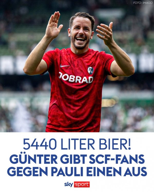 德天空:弗赖堡领队 冈特成为队史出场王,本轮德甲将请球迷喝啤酒11月8日讯 北京时间明天晚上,弗赖堡将在德甲第10轮赛事 中主场作战 对阵圣保利。 弗赖堡领队 冈特已经为球队出场440次,从而跨越 泽耶尔,成为弗赖堡队史出场次数最多的球员。 据德国天空体育报道,为了庆祝达成这一里程碑,冈特将在这场赛事 中请弗赖堡球迷喝啤酒,他将为球迷准备5440升啤酒。