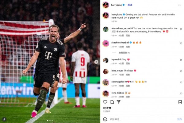 头顶脚踢!凯恩社媒晒庆祝照:又一场获胜 ,我们竞技状态 正佳10月30日讯 拜仁在本轮德国杯4-1反转 科隆,凯恩头顶脚踢连进两球。 第38分钟,奥利塞右路弧顶精准直塞给到凯恩,后者小角度回转 抽射破门。 第63分钟,基米希左路底线球开到危险区域 ,门前凯恩摆脱防卫 后轻松顶球破门。 他也在赛后通过社媒晒出自己的庆祝照,并配文:“任务完成!又一场获胜 ,并且晋级下一轮 下一轮。我们竞技状