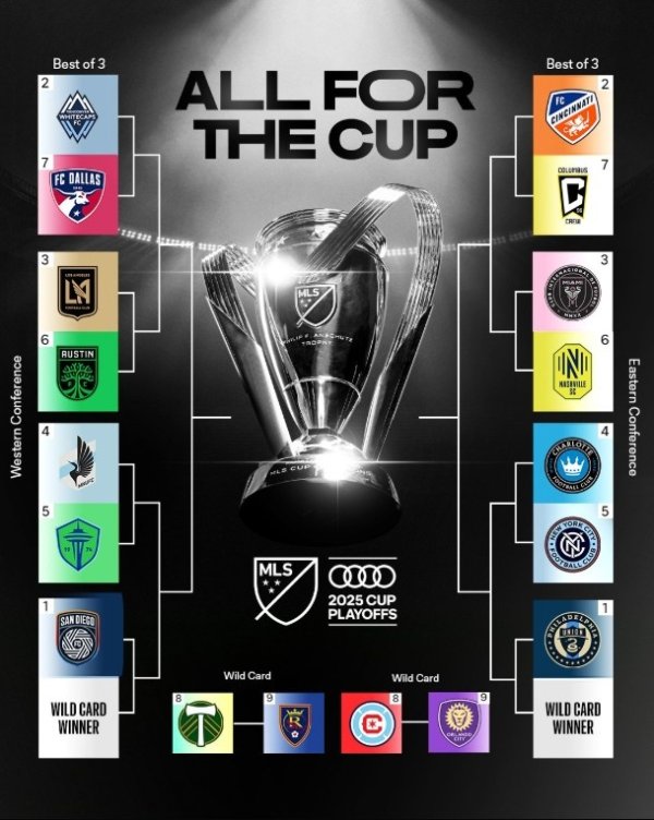 美职联季后赛首轮对阵:迈阿密vs纳什维尔、温哥华白浪vs达拉斯10月19日讯 美职联常规赛全部结束,季后赛首轮对决出炉,迈阿密国际vs纳什维尔。根据规则,季后赛首轮采取三场两胜制。 附美职联季后赛首轮对阵: 西区:温哥华白浪(2)vs达拉斯FC(7)、洛杉矶FC(3)vs奥斯汀FC(6) 明尼苏达联(4)vs西雅图海湾人(5)、圣地亚哥(1)vs外卡(波特兰伐木工(8)与皇家盐湖城(9)胜